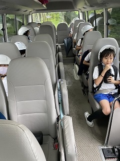 バスの中ではあまりおしゃべりしないように約束しています。(感染予防です)ですが、まったくというわけではありません。発車までの間は、いっぱい語りかけてくれる子どもたち。読んでいる本の話、好きなゲームの話、今日のお昼ご飯の話・・・。何を聞いても楽しいですよ!
