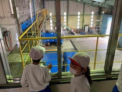 ペットボトル、金属、プラスチックなどきちんと分別し、再利用できるように処理している施設です。大きな大きなクレーンがゴミを持ち上げてはハラハラと落としている場面を見せていただきました。「ゴミの雨やあ~」という声が子どもたちからあがっていました。