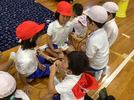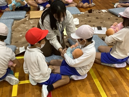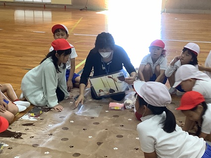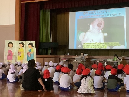 「この世に生まれてきた命は、「きせき」なんだよ。」と生命の尊さをお話していただきました。また、グループに分かれて、命のはじまりや、お母さんのおなかの中で成長していく赤ちゃんのことを教えていただいたり、赤ちゃん人形(3000グラムくらい)をだっこさせてもらったり、自分たちの心臓の音を聴かせてもらったりしました。子どもたちは、興味を持ってしっかりと話を聞いたり、体験したりしました。これから、各学級でさらにこの学習を深めていきます。