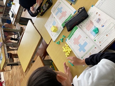 算数の授業です。なるほど、体積の学習のスタートなのですね。
