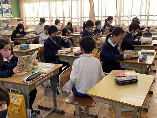 本年度は、ふだんの貸し出しを一人2冊として、子どもたちから大好評です。たくさん本を読んでくれたら嬉しいです。冬休みは一人3冊借りられます。4星が図書室へ行っているときのことです。本を決めて戻ってきた子どもたちは静かに借りてきた本を読み始めていました。きちんと習慣ができています。