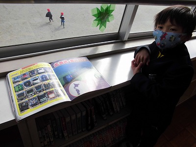 図書室から運動場を見ていたら、1年生の男の子が「校長先生、この本見て」と寄ってきて、本の内容に関連した自分のお家での体験をお話ししてくれました。楽しいひと時でした。こんなうれしいことがあるので、本も図書室も大好きです。 見せてくれた本には、様々な乗り物が紹介されていました。2人でお話ししたのは農業用トラクターのページでした。今、電車のページが開いているので、ふと思い出した職員室でのエピソードを紹介します。週に1日、4年生に入ってくださる森田先生が、懐かしい機関車の写真アルバムを持ってきてくださったのです。松阪・津・亀山近辺で走っていたD51やC57です。関心のある方は、森田先生に声をかけてみてください。ものすごく語ってくれますよ。 こちらは、雪組での読み聞かせ。 節分に合わせたおもしろい絵本で、 のめり込んで見ています! 本の世界に入り込むって、本当に楽しいですよね! |