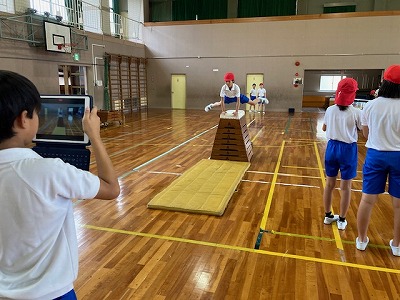 友だちのとび方を動画で撮影し、フォームのチェックをしているのですね。