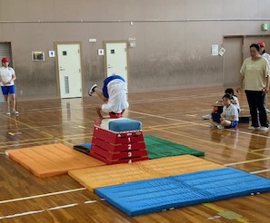 “開脚とび”ととび箱の上で前回りをする“台上前転”に挑戦中でした。