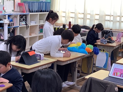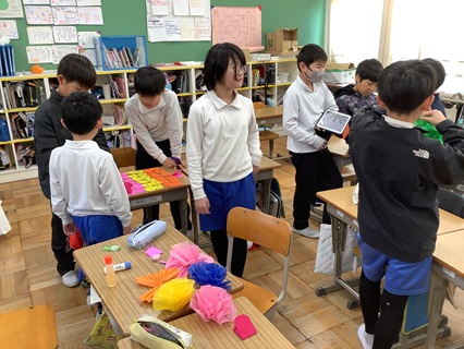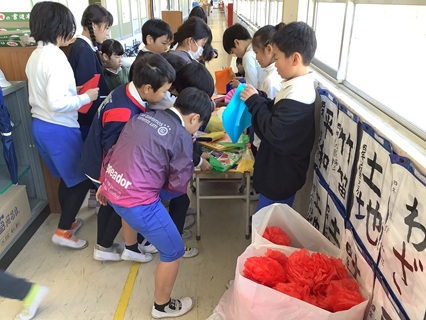 2月19日(木)4年生が花組星組とも協力して、6年生を送る会の準備をしていました。色とりどりのお花紙を使って、たくさんの花飾りを作っていました。また、6年生へのプレゼントも子どもたちが考え作っていました。どんなプレゼントかは、ここでは内緒にしておきます。どの学年も今、6年生を送る会の出し物など、子どもたちが協力し合って練習したり、準備したりと一生懸命です。たくさんお世話になった6年生に感謝の気持ちを込めて、すてきな6年生を送る会にしてくれることと思います。