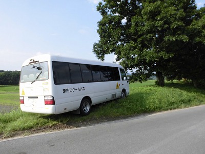 今朝は大井バスに乗車しました。7時25分出発!踏切や信号渋滞があるので、早めの出発です。最初の其倉バス停のちょっと手前の空き地で、時間調整です。