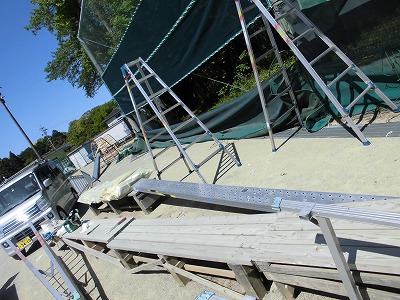 職人さんのお昼休憩の時に、ちょこっと写真を撮らせてもらいました。なかなか大がかりな修理です。