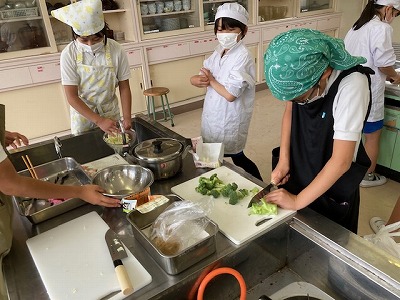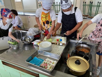 野菜を切ったり、鍋の火かげんを調整したり、ゆで具合を確認したり、仕事を分担しながら慎重に取り組んでいました。
