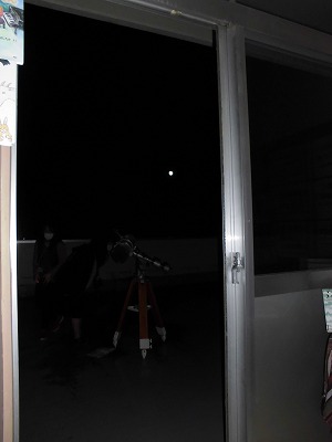本当は、満月の前のちょっと欠けていて風情のある十三夜(十五夜の手前の月のことです)を鑑賞したかったのですが、いろいろあって、満月の今宵に鑑賞することになりました。学校医の小渕医院様から寄贈いただいた天体望遠鏡の登場です!