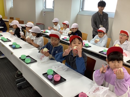 10月22日(水)3年生が井村屋さんに社会見学に行ってきました。あずきバーや肉まん、あんまんができるまでを映像で説明していただき、実際に工場の中であんまんを作る様子を見せていただきました。また、お箸であずきつかみゲームも楽しませてもらい、お土産にゲームで使ったお箸をいただきました。最後に、肉まんを美味しくいただきました。工場の仕事では、さまざまな工夫をしてたくさんの商品を作っていることがわかったことと思います。