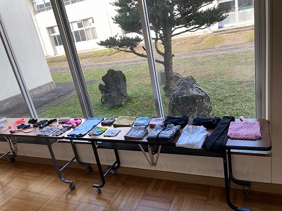 この機会に、正面玄関前に、2学期の落し物を並べました。ハンカチ、服、なわとびなど、いろいろあります。 ご来校の際に、お子さんのものはないか、一度ご確認ください。