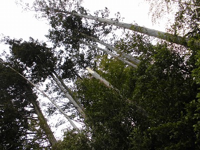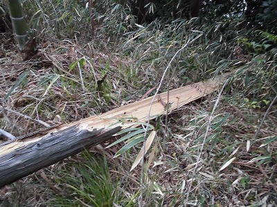 スクールバス駐車場で、運転手さんたちが見上げているのは高~い杉の木です。何が危機一髪かというと、実は、1週間ほど前でしょうか・・風の強い日が続いたのですが、その風で杉の木の1本が折れたというのです。 折れた10mはあろうかという木の上部分は、茂みの方へ倒れていました。 もしこれが駐車場側へ倒れてきていたら、バスは直撃を受け、かなりの破損となっていたことでしょう。そう思うとゾッとします。 ※豆知識 危機一髪の「いっぱつ」を一発と書き間違えてバツを もらうというケースがよくあります! 覚えておくと助かることがあるかもね! |