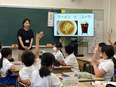子どもたちからはあちこちから「やっばー」という声が・・・。理由を尋ねると、栄養が偏っている、具があったほうがいい、太る、などの意見が出ていました。