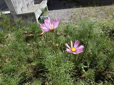 午後の1番暑い時間帯での下校です! 先生たちは子どもたちを玄関先で見送った後、 車でパトロール! 中庭で咲き出した涼しげなコスモスの花と、意外と吹き抜ける風の心地よさに背中を押され、私(校長)も、子どもたちと一緒に下校の暑さやしんどさを体験してみました。 道々、たくさんの保護者の方にお会いしました。見守り、お迎え、私へのねぎらいのお言葉まで・・、本当にありがとうございます。 あちこちの通学路を子どもたちと歩き、最終的には一番遠い地区の子どもと歩くことになりました。すでに2キロ以上歩いており、風が無かったら歩けないなあと弱音を言い出した時、パトロールに出ていた先生の車に遭遇!どうやら拾ってくれようと私を捜索してくださっていたみたい! 助かった~。 すれ違う子どもたちに声をかけ、学校へ戻りました。 この距離を毎日歩く、しかも暑い中・雨の中・寒い中、どうしようもないことが多いのですが、学校の空調を整えておく、荷物を少なくするなど、配慮できることはしっかり考えていきたいと改めて思った次第です! |