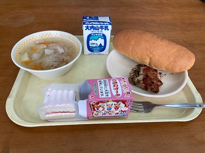 今日の給食に、クリスマスケーキが出ました。