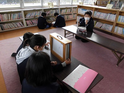 来週から “図書館祭り” が開催されます。昼休みに図書室へ読書をしに行ってみると、図書委員が祭りの準備に取り組んでいました。