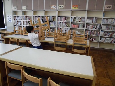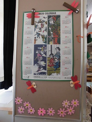 明日から9月。図書室入り口の壁面が月見バージョンに変わったことは、8/26版でお伝えしましたが、図書室内にも秋の足音が!まずは、お米とおいも! イシシとノシシが、何かやらかしそう?! 赤とんぼ、みの虫、オニちゃんも楽しそう! コスモスが秋を感じさせてくれますね! 滝平 二郎さんの 切り絵カレンダーもステキです! (モチモチの木、花さき山、半日村などでおなじみです!) 図書室の秋に浸っていたら、お掃除が始まりました。 さっきまで読書をしていたこともあり、一番にお掃除を始めました! ごくろーさまです! ありがとう! |