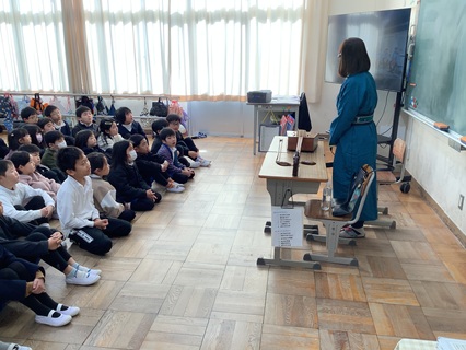 3月9日(月)2年生がモンゴル出身の方にゲストティーチャーとして来ていただき、モンゴルのお話を聞かせていただきました。2年生は、国語で「スーホの白い馬」という物語文を学習します。そのお話は、モンゴルのお話で「馬頭琴」という楽器が出てきます。馬頭琴も持ってきていただき、音色も聞かせていただきました。また、たくさんの資料画像も準備していただき、モンゴルの文化やくらしについてお話していただきました。子どもたちは、お話や資料画像にくぎ付けになっていました。世界には、いろいろな国があり、いろいろなくらし、文化があることを知ることができました。他の国のことも知りたくなってきますね。