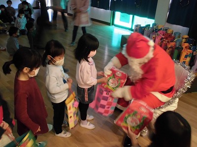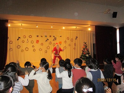 今日は一志こども園でクリスマス会があるということで、少し様子をのぞかせてもらいに行ってきました。“かわいらしさ” と “先生たちの細やかな配慮” があふれているステキなクリスマス会でした。 子どもたちの手作りのブーツやバッグ、とても上手なできばえでした。きちんと並ぶ姿、ありがとう!・メリークリスマス!と声をかける様子、見ていて「立派、立派」とほほ笑んでしまいました。 サンタさんへお歌と踊りのプレゼント! サンタさん、うれしすぎて踊り出してしまいました! 見てください。年長さんが、年下の子どもたちに会場をあけわたす際、ブーツを並べていった光景です。このきちんと並べられたスッキリ感!・・・日頃からの意識の高さと一体感がよく伝わってきます。 小学校へ来てくれるのが楽しみです! |