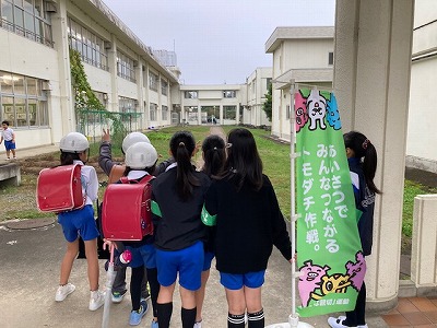 昇降口の近くで役員さんたちが「おはようございまーす」と元気に呼びかけてくれていました。多くの子どもたちが、それにあいさつを返していました。
