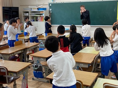 2年生がジョーダン先生と外国語の活動に取り組んでいました。