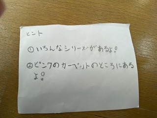見つかったら「おめでとう!」とお土産をくれます。手作りのしおりがうれしいです。
