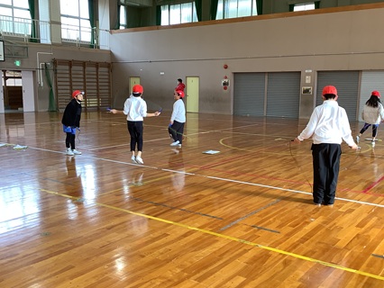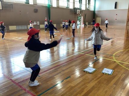 1月22日(木)3年生が体育で縄跳び運動をしていました。個人技にチャレンジということで、なわとびカードにできたらチェックをしていきます。「ウサギコースまでできたよ。」「ペガサスコースにチャレンジしとるよ。」と話してくれる子もいました。二重跳びにチャレンジしている子が、何回も何回も挑んでいる姿がすてきでした。それぞれ自分の目標に向かってがんばっています。