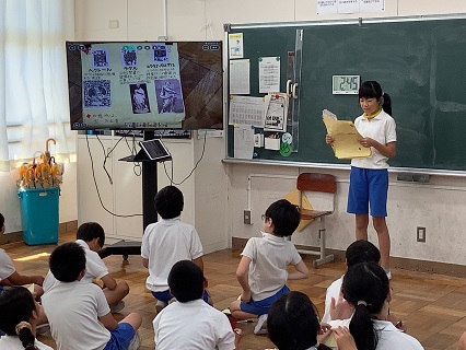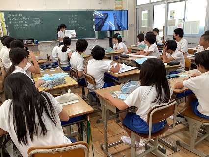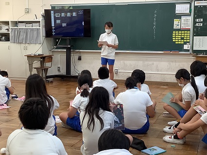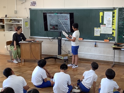 9月2日(火)5,6年生がそれぞれ4つの教室の分かれ、6年生が夏休みに取り組んだ自由研究を5年生の前で発表しました。6年生の自由研究は、聞いていて「なるほど」と感心したり、「おもしろい」と興味をそそられるものばかりでした。SDGS、ネコの性格の違い、アイスクリームの作り方、トイレを涼しくするために、ペットボトルで雲を作ろう、大阪・関西万博に行って興味を持った外国について、食物アレルギー、トランプのJQK、もみじ饅頭等々、さまざまなテーマがありました。聞く側は、付箋に感想を書いて渡していました。5年生にとっても6年生にとっても有意義な2時間になったことでしょう。6年生、自由研究の取組、よくがんばりました!