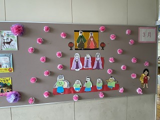 2日のボランティアさんの活動で、こんなに華やかになりました。ひな祭りの日は過ぎたけど、ステキな飾りはもう少し見ていたいですね。