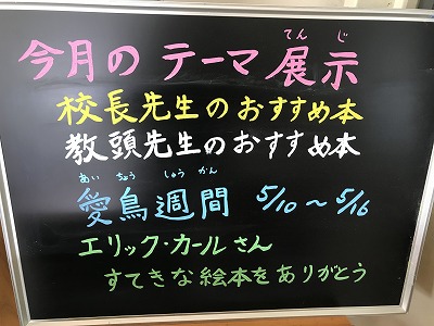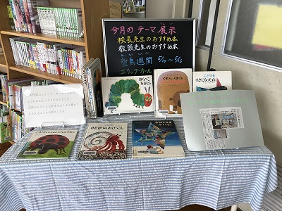 エリックカールさんをしのんで、司書の古川さんがさっそく特設コーナーを作ってくださいました。