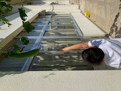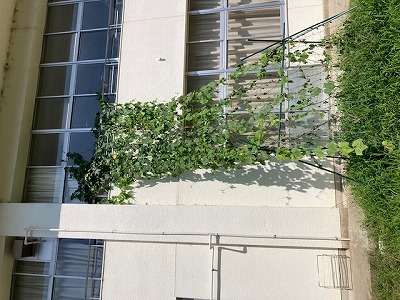 1学期に植えたヘチマがこの夏休みの間にぐんぐん伸びました。