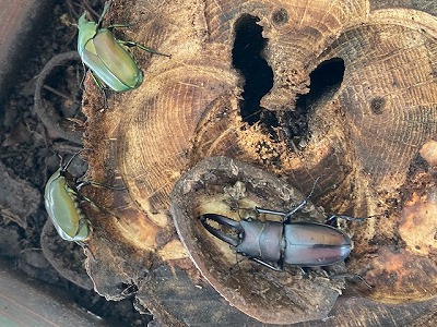 「朝、5時ごろに起きてカブトムシやクワガタを捕りにいくよ!」「校庭でもクワガタやカブトムシがとれるよ!」と教えてくれた子がいました。