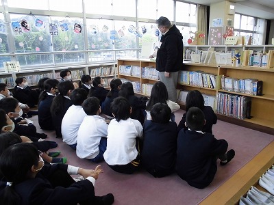 今日から、古川司書による図書室の利用に関するオリエンテーションが始まりました。各クラスが図書の時間に、お話を聞いて、正しい使い方と本への興味をさらに広げるという取組です。