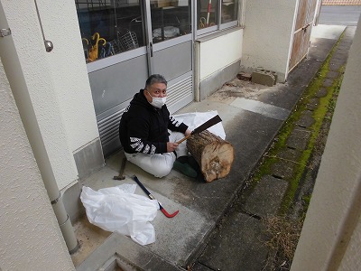 何が始まるのでしょう? この大三小学校からもらってきた 大きな切り株 がヒントです! 司書さんの好きな餅をつく臼?・・ブッブー! 司書さんの好きな人形を置く台?・・ブッブー! 力を合わせて作っているのは、切り株の椅子です! 木目の美しい、あったかみのある手作り椅子になる予定です。ちょっと時間がかかりそうですが、この意気込みなら大丈夫! 期待して、待っていましょう! |
