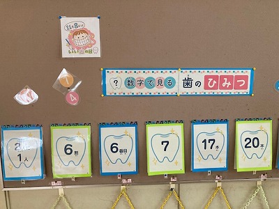 保健室前の掲示板も「いい歯の日」に関係するものにリニューアルされました。