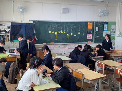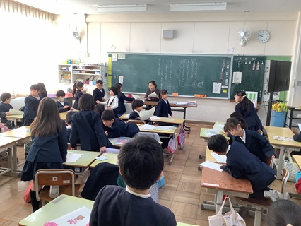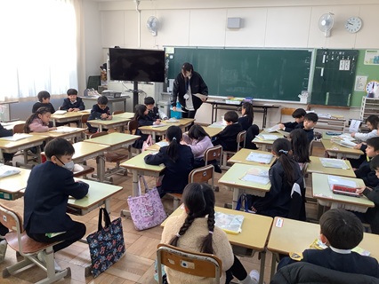 1月8日(木)始業式の後、各学級では、冬休みの宿題を提出したり、冬休みの出来事を話したり、係決めをしたりと、元気にスタートしました。3学期に行く社会見学について、質問を考えている学級もありました。3学期の学習も楽しみですね。久しぶりに会った子たちが、笑顔で挨拶してくれたのもうれしかったです。