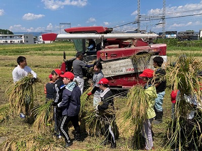 自分たちの植えた小さな苗が、こんなに立派な稲穂に育つ自然の力に驚くとともに、稲刈り作業の苦労や農機具の力を実感しました。