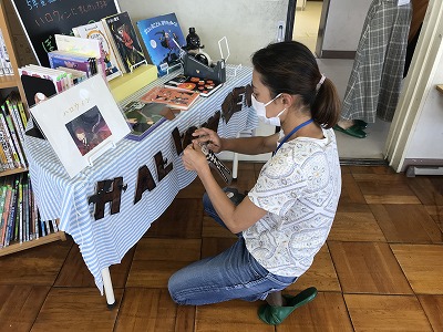 司書の古川先生が集めてくださったハロウィンの本のコーナーも飾りつけされるとさらにハロウィン気分が盛り上がります。