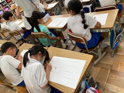 子どもたちは、聞き逃すまいと一生懸命聞いてくれ、聞き取ったことをプリントにメモしていました。