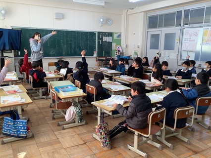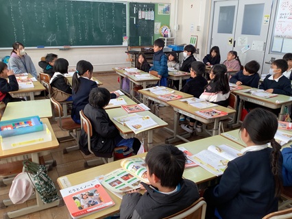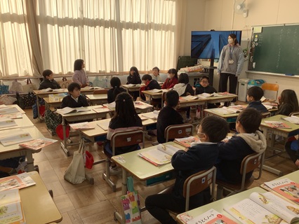 1月21日(水)1年生が道徳で「はしのうえのおおかみ」という教材文で、「親切、思いやり」について、考え話し合っていました。意地悪だったおおかみが、大きなくまに親切にしてもらったことで心境が変わり、自分も他の動物たちにやさしくするようになる話です。おおかみの気持ちの変化を考えながら、自分のこともふり返って話し合っていました。「ありがとう」と言ってもらうとうれしい。いいことをしたから、いいことがかえってきた。など、発表していました。親切にすると、相手も自分も気持ちがいいことを感じることができていたようです。