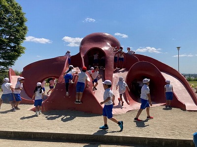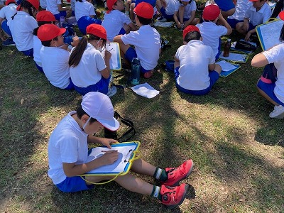 目的地は“たこやま公園”です。子どもたちに大人気のスポットです。おもしろそうな遊具、ちょっと小高い山には三角点、などがあり、思い思いに遊んだり見学したりした後はしっかり気づいたことなどをワークシートに書いていました。メリハリのある活動にさすがは中学年、ここに来た目的がちゃんとわかっているなあ、と感心しました。