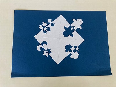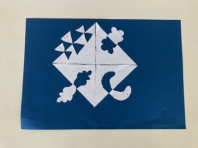 切りぬいた部分が外側に飛び出す切り絵です。おもしろいですね。