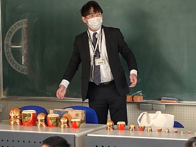 4年生が社会科国際交流学習の一環として、高田短期大学の伊東先生をゲストティーチャーにお招きしました。