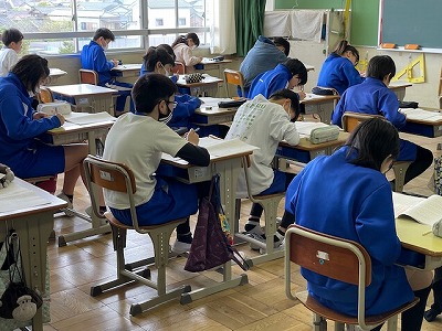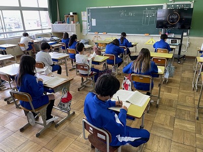 6年生が「全国学力・学習状況調査」を行いました。今年の調査は、国語と算数の2教科でした。静かに集中して問題に取り組んでいました。