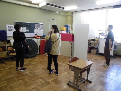 何回か紹介している『たけのこ教室』(通級指導教室)の視察に、津市内の他の通級指導教室の先生方が来られました。お互いの指導の向上を目指して、情報共有をおこなっていました。