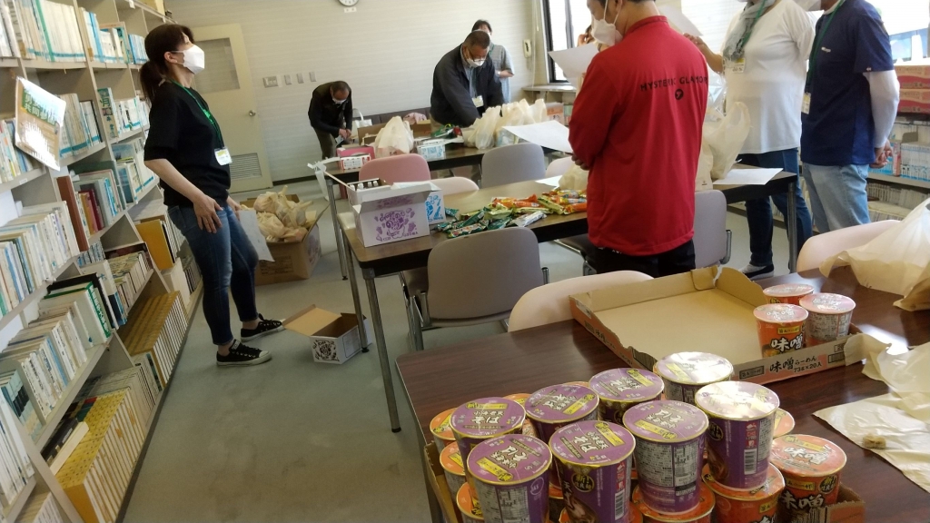 こちらは、実行委員のメンバーがお菓子類のお土産セットを準備しているところです。調理室では、手作りカレーを準備してくれていました。すごいパワーです!