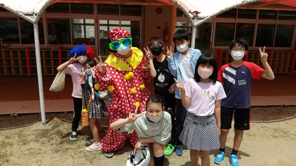 さろん そのものの様子は、大盛況すぎて写真を撮ること自体を忘れていました。会の終了後、あわてて近くにいた子どもたちと記念撮影をしました。ピエロが私(校長)です! おもしろい学校づくりに精を出していきたいです!