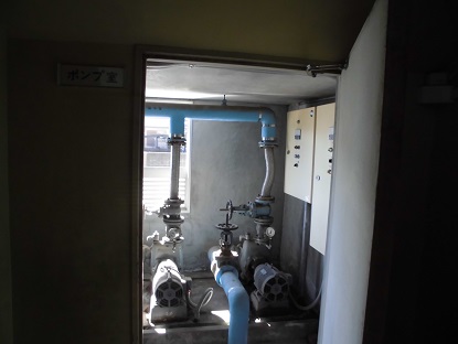 こちらは1階のポンプ室。なかなかオープンすることがないので、へーッと見入ってしまいました。学校って、すごい所ですね!
