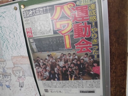 運動会の感動を学級通信にするとき、スポーツ新聞風に工夫したとのことです。おもしろい!発想も行動力もハナマルです!
