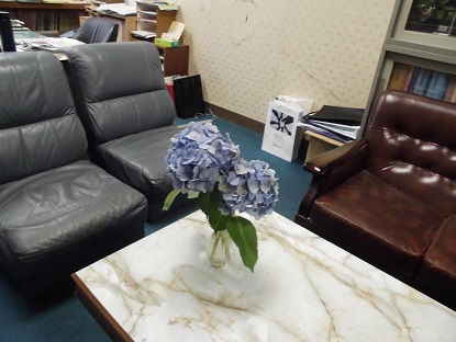 何がすごいって、6月27日のHPにも掲載したのですが、その日に子どもからもらったアジサイの花が、3週間とちょい経った今日も、校長室を彩ってくれているのです。3週間、多くのお客さんに「すてきですね」とほめていただき、会話が弾むきっかけにもなりました。何より、毎日水を換える私の心がなごみました。花のある暮らしって、いいものですね。